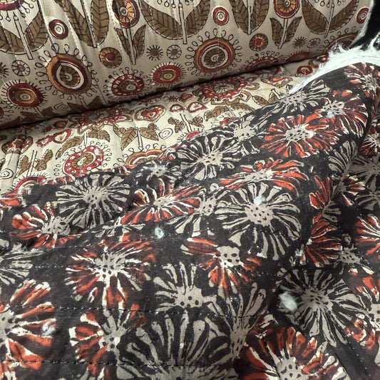 Charcoal Garden + Noir Marigold - Quilted Bagru Indian Cotton Block Print (Reversible)
