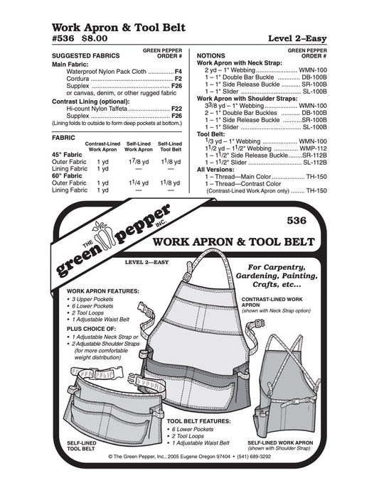 Work Apron & Tool Belt Pattern - 536 - The Green Pepper Patterns