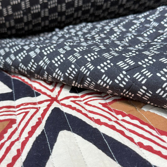 Indigo Mosaic + Ebony Echo - Quilted Bagru Indian Cotton Block Print (Reversible)