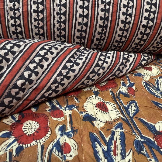 Autumn Bloom + Vintge Flora - Quilted Bagru Indian Cotton Block Print (Reversible)