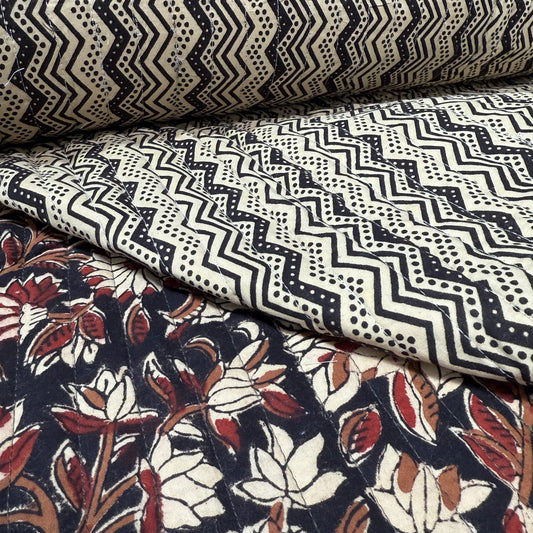Clayfield Vines + Kora Rhythm - Quilted Bagru Indian Cotton Block Print (Reversible)
