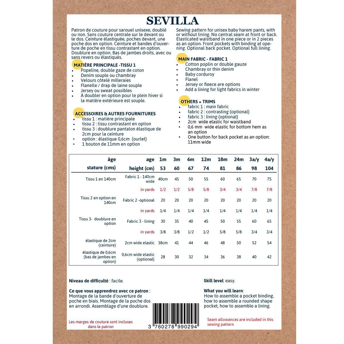 Sevilla Unisex Harem Pants Sewing Pattern - Baby 1M/4Y - Ikatee