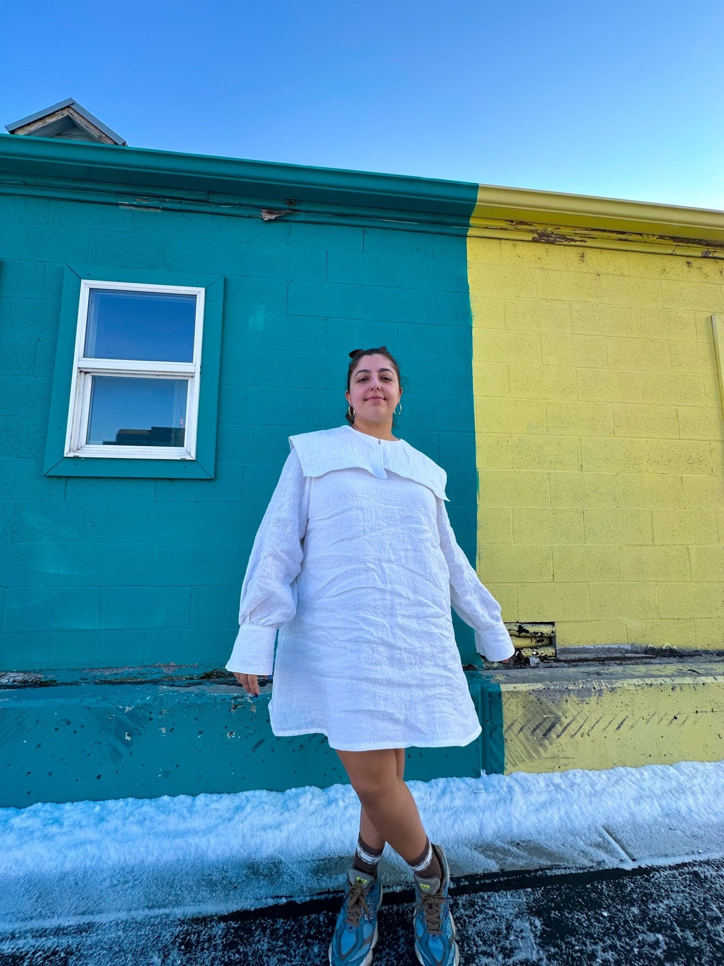 The Moxie Dress is designed to be made in light to medium weight woven fabrics with slight drape. We found that cotton, and linen blends work best. Designed to use what you have on hand, the Moxie Dress also lends itself well to thrifted and repurposed fabrics.