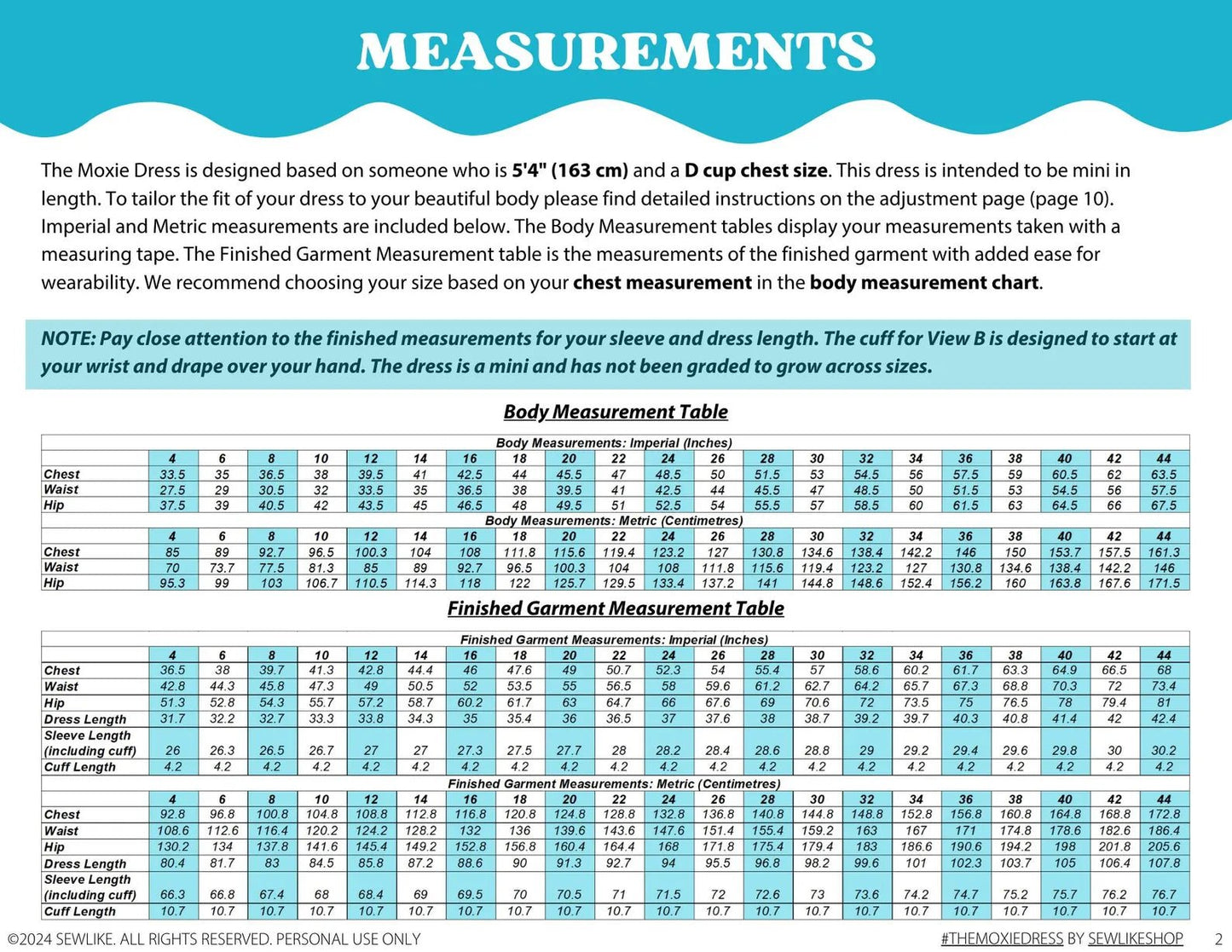 Size inclusive pdf sewing pattern with sizes 4-44.