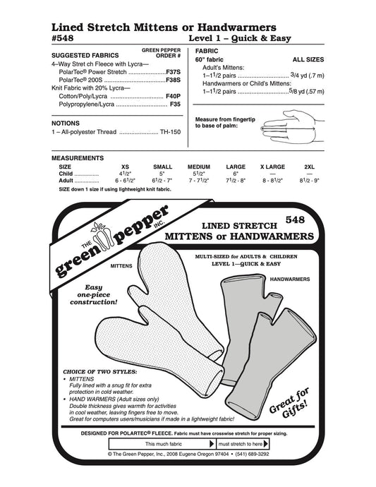 Lined Stretch Mittens or Handwarmers Pattern - 548 - The Green Pepper Patterns