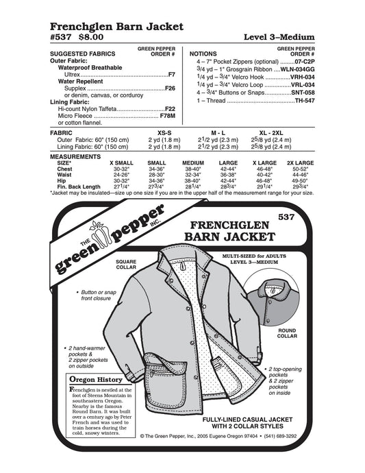 Adult’s Frenchglen Barn Jacket Pattern - 537 - The Green Pepper Patterns
