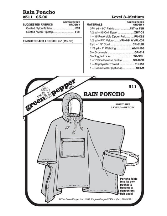 Adult’s Rain Poncho Pattern - 511 - The Green Pepper Patterns
