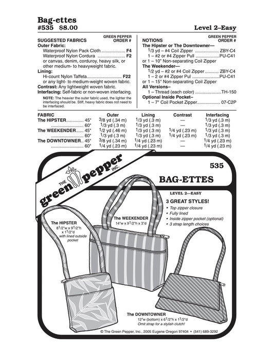 Bag-ettes Pattern - 535 - The Green Pepper Patterns