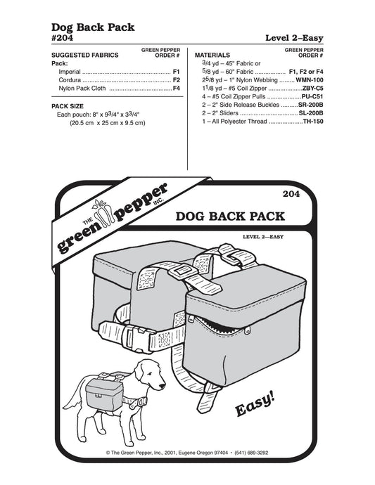 Dog Back Pack Pattern - 204 - The Green Pepper Patterns