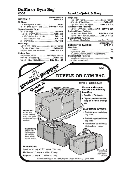 Duffle or Gym Bag Pattern - 551 - The Green Pepper Patterns