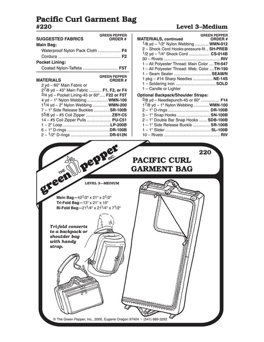Pacific Curl Garment Bag Pattern - 220 - The Green Pepper Patterns