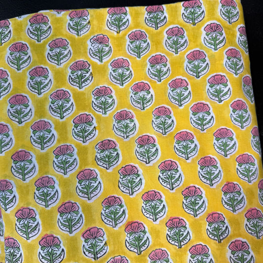 Floral Sunshine Buti - Bagru Indian Cotton Block Print