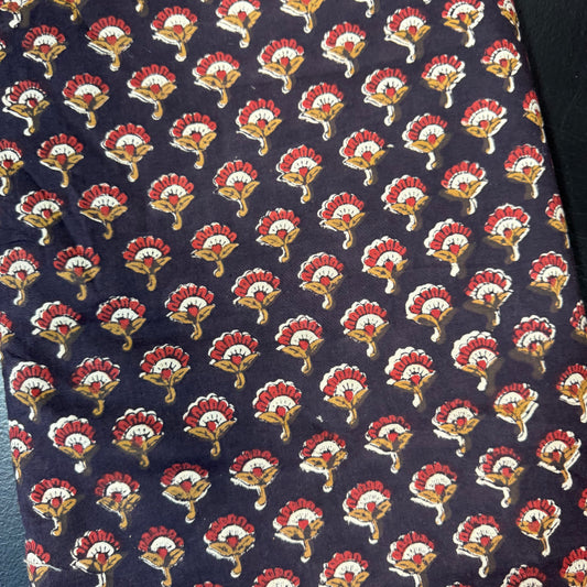 Burnt Sienna Bloom - Bagru Indian Cotton Block Print