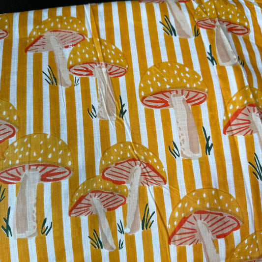 Mushroom Grove Stripe Mustard - Bagru Indian Cotton Screen Print