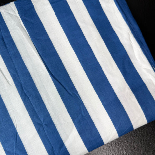 Bold Lines Blue/White - Bagru Indian Cotton Screen Print