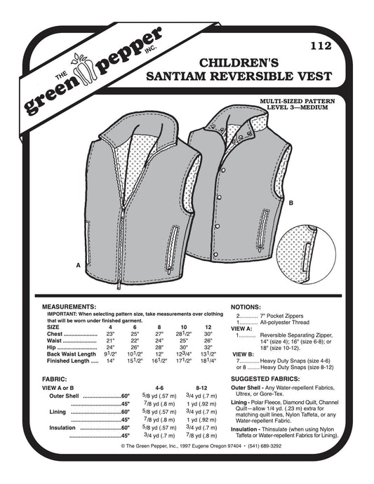 Kid’s Santiam Reversible Vest Pattern - 112 - The Green Pepper Patterns