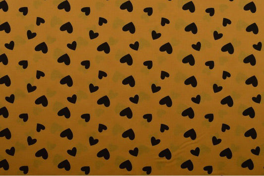 Cotton Voile - BLACK HEARTS - European Import - Oeko-Tex® - Ochre Yellow