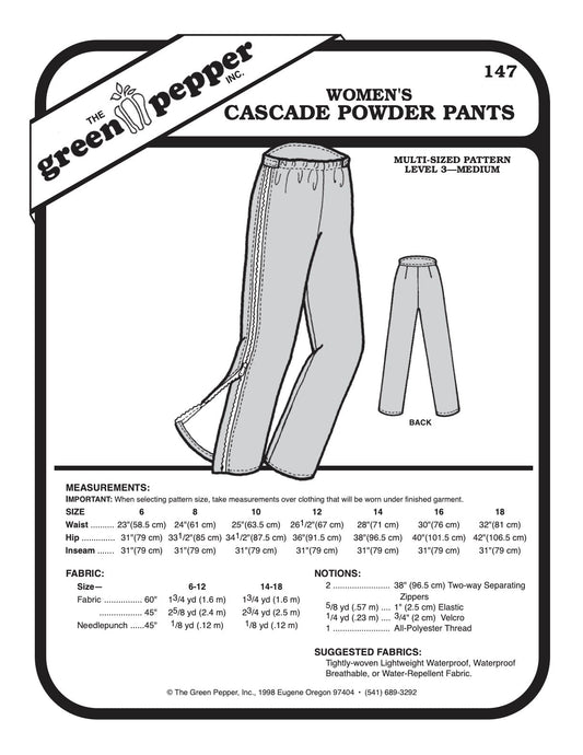 Women’s Cascade Powder Pants Pattern - 147 - The Green Pepper Patterns