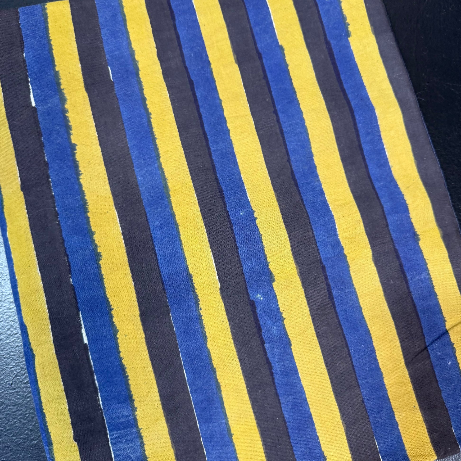 Bold Stripes Denim/Ebony/Mustard - Bagru Indian Cotton Block Print