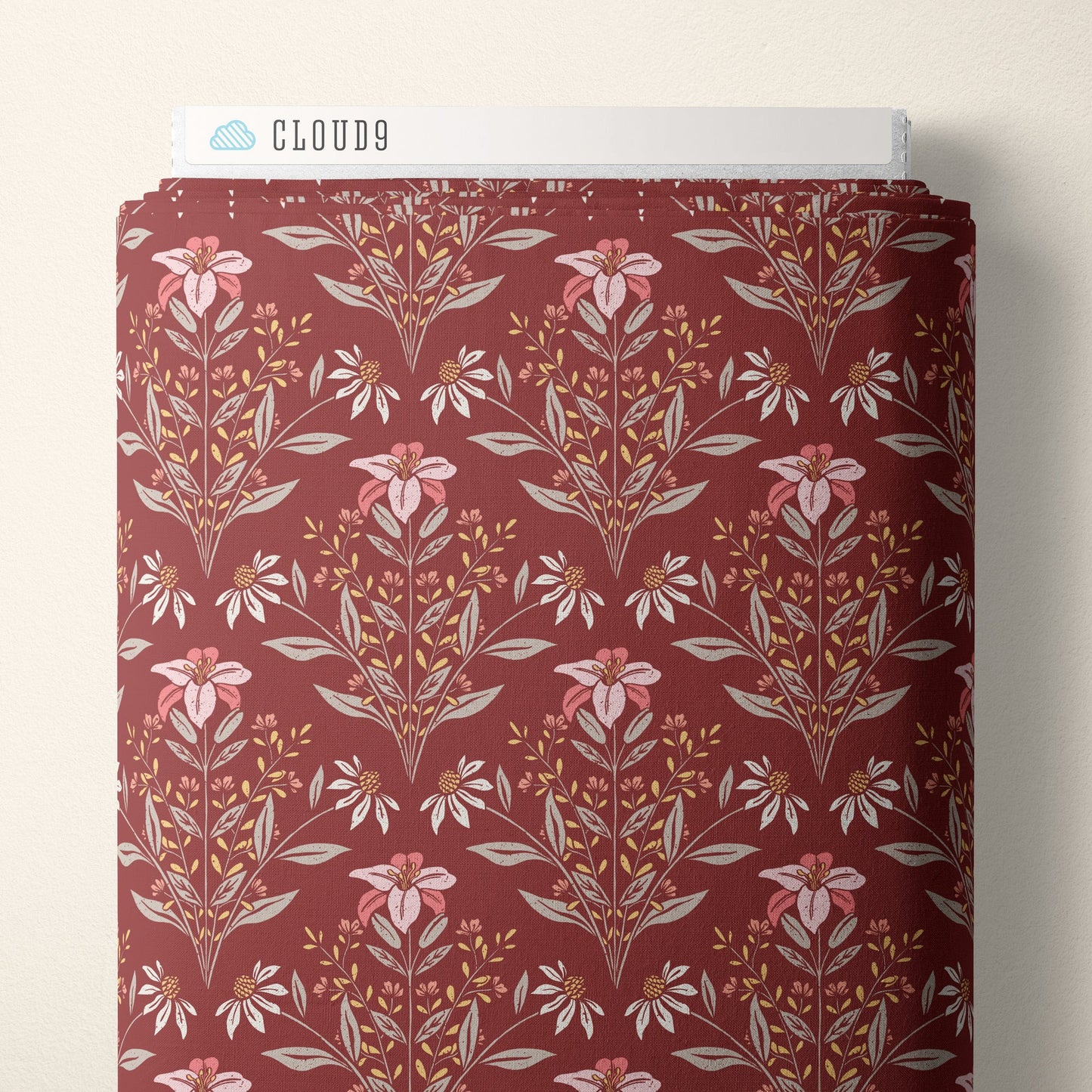 Bouquet - Burgundy - Eventide - Jillian Anderson - Cloud 9 Fabrics - Poplin