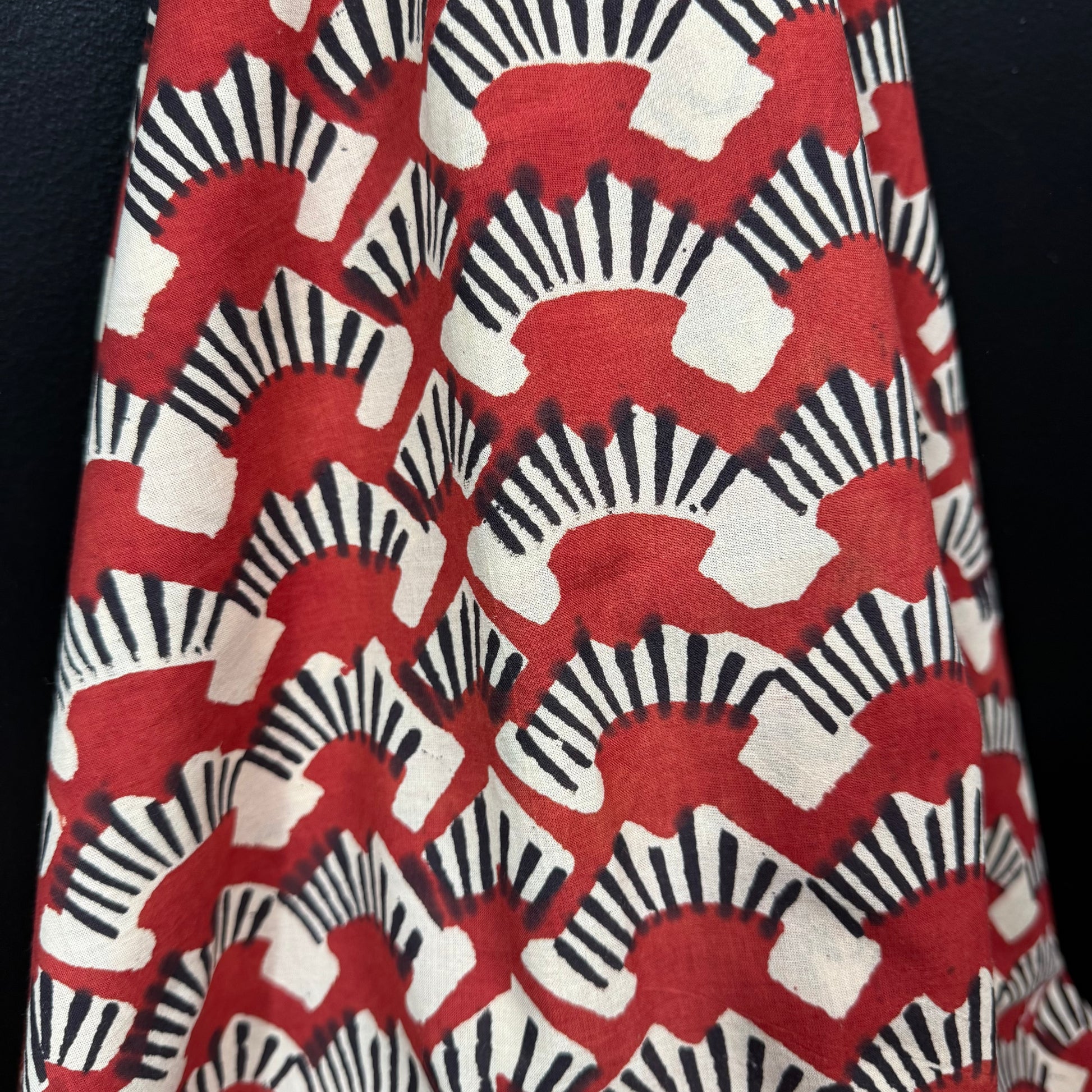 Each piece is created using centuries-old block printing techniques. Skilled artisans carve intricate designs into wooden blocks, then press them by hand onto 100% cotton cloth, resulting in beautiful patterns rich in heritage and charm.