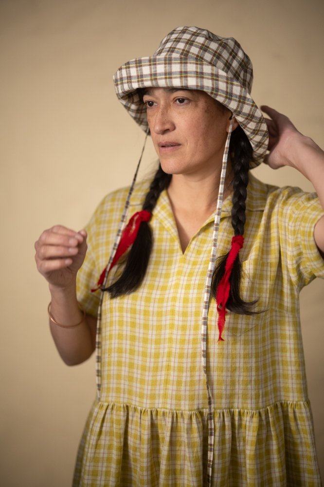 A cutesy linen check in pale yellow and daffodil yellow with a hint of dusty pink.