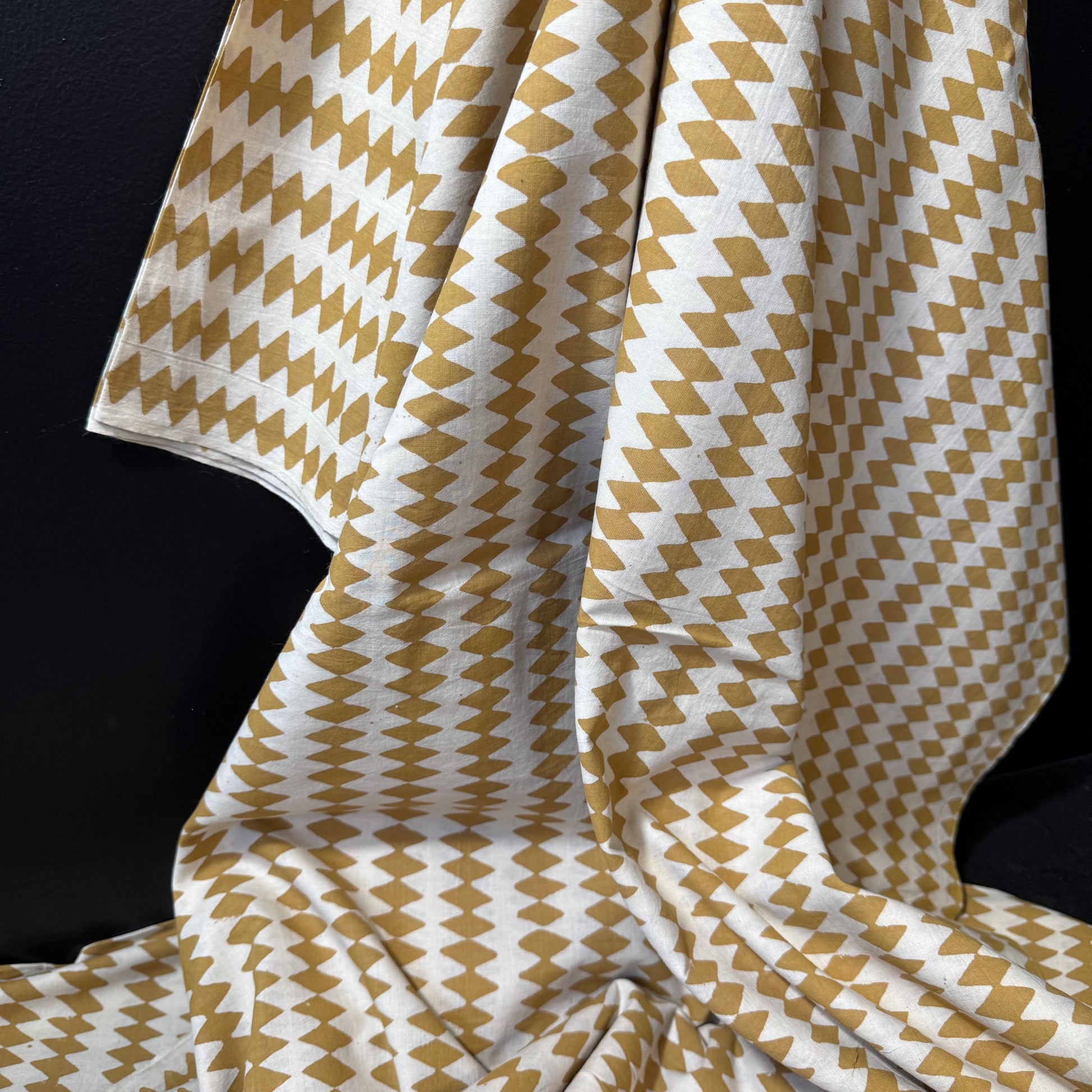 Earth ZigZag Cumin - Bagru Indian Cotton Block Print