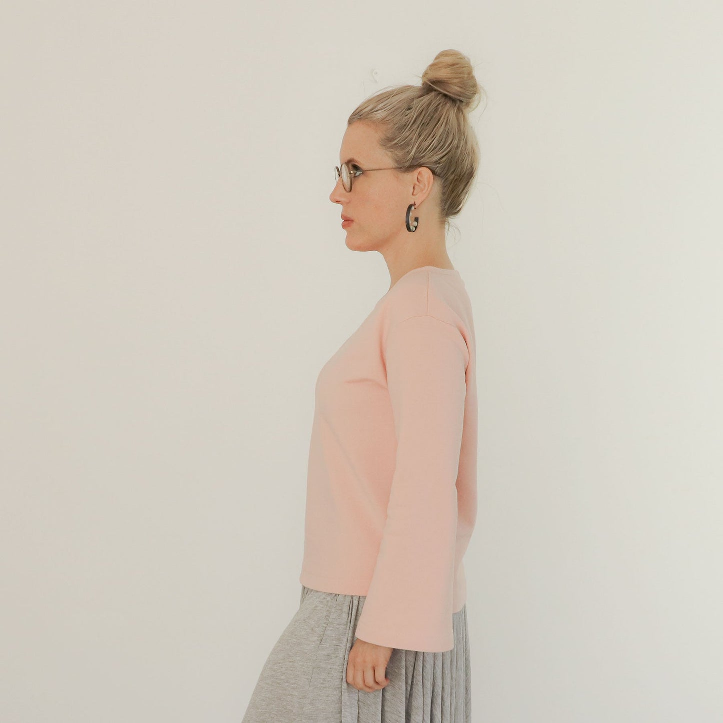 The two sleeve options include the classic cap with a generous hem width, or a very cute bell flare, landing at bracelet length. Giving an easy to wear basic a unique edge. This will be high rotation, wardrobe favourite.