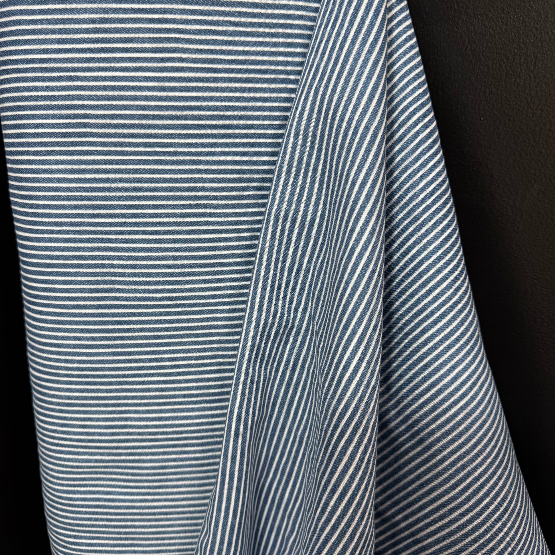 Hickory Stripe Denim Look Double Gauze - Japanese Import - Medium Denim/White