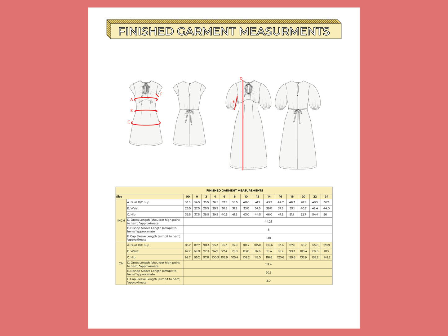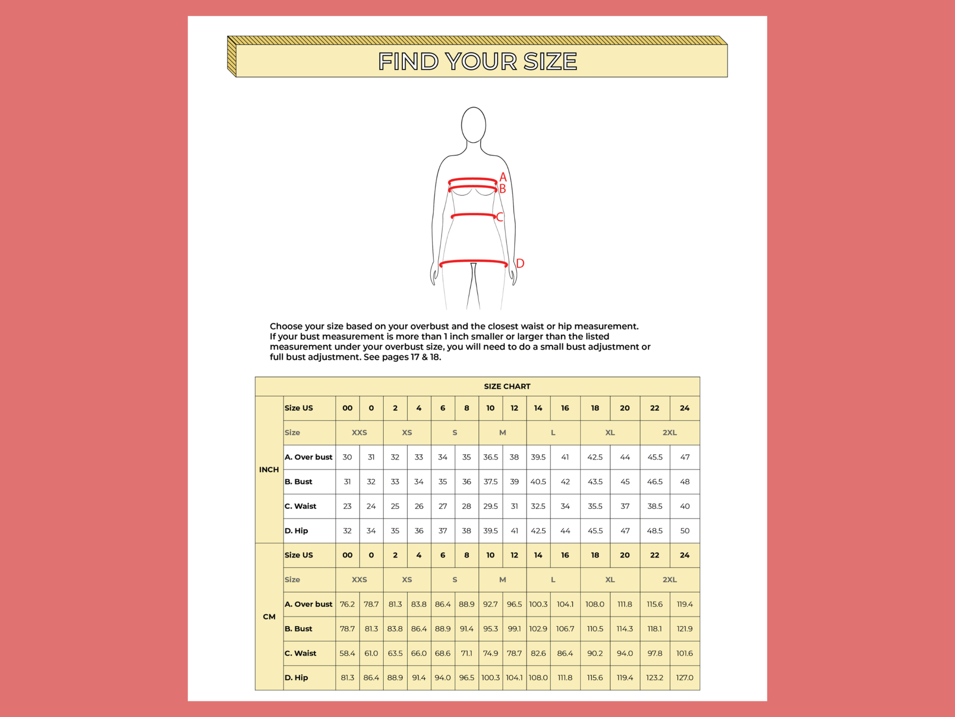 Choose your size based on your overbust and closest waist or hip. FBA and SBA instructions included.