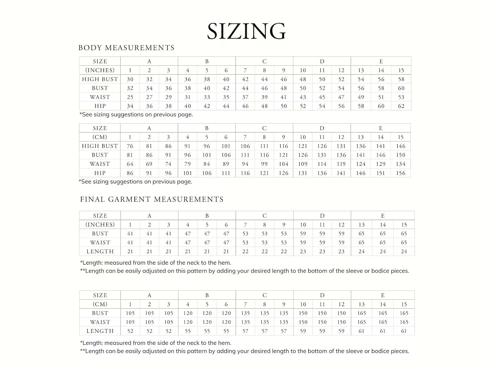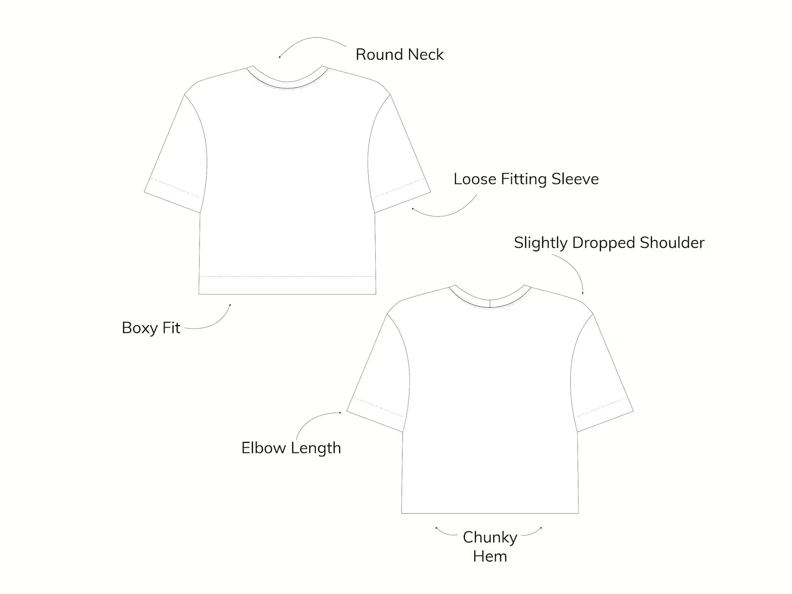 These patterns were drafted for a B/C cup and a 5'6"(1.67m) person. It has been drafted with easy to alter straight lines, and shorten/lengthen lines to help adjust for length. The boxy of the t-shirt and sweatshirt fit works well with most cup sizes without an FBA.