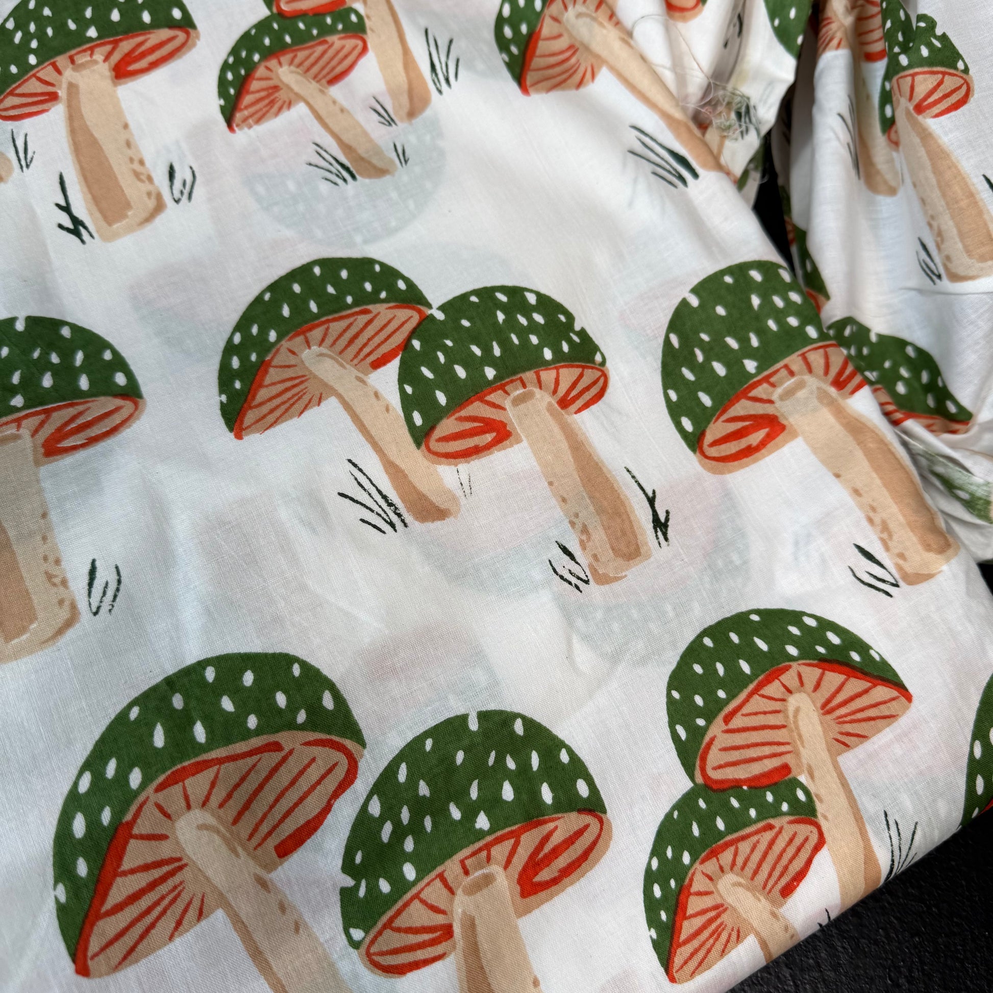 Mushroom Grove Olive - Bagru Indian Cotton Screen Print