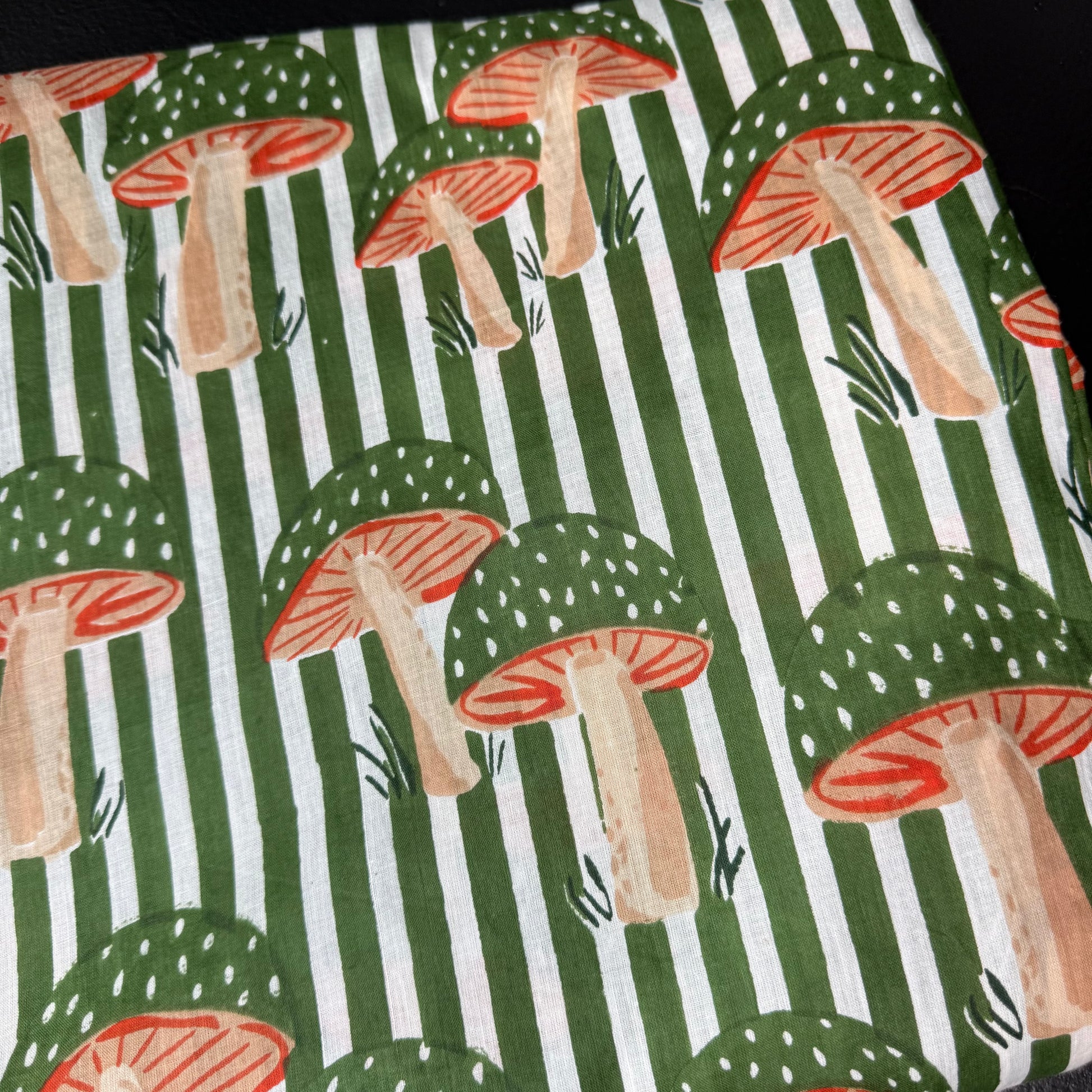 Mushroom Grove Strip Green Ivy - Bagru Indian Cotton Screen Print