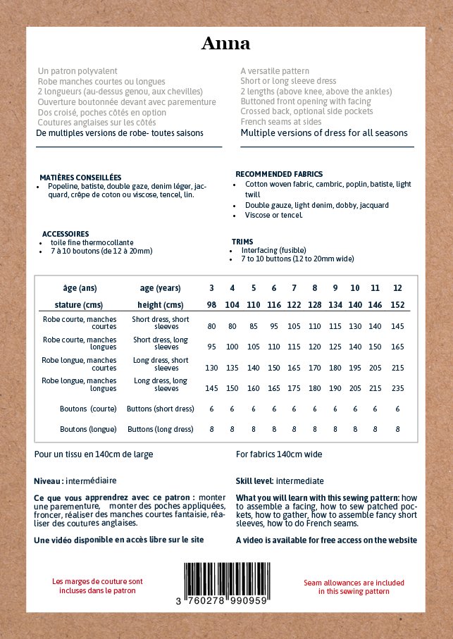 Anna Dress Sewing Pattern - Girl 3/12Y - Ikatee