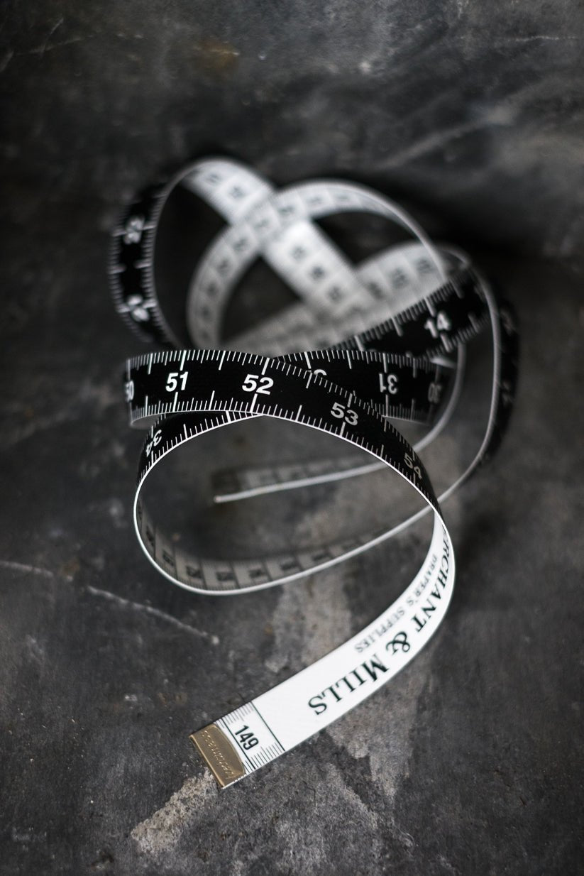 A traditional black & white tailor’s tape measure in metric and imperial. PVC coated polyester fibre with metal tips.