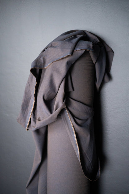 A soft cotton and linen blend in a navy and brown chambray creating a dark berry shade. A versatile cloth that is a great alternative to linen.