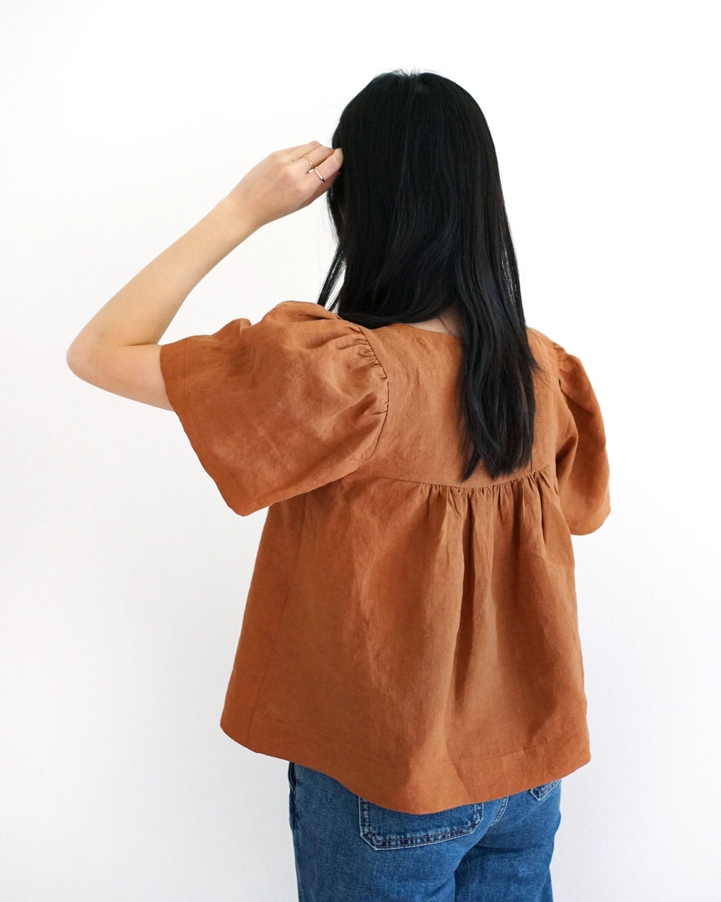 This Pattern includes a bonus sleeve view which is a modern style ruffle that is easy to construct and interchangeable between views. It also includes pattern pieces and instructions for a square neck hack.