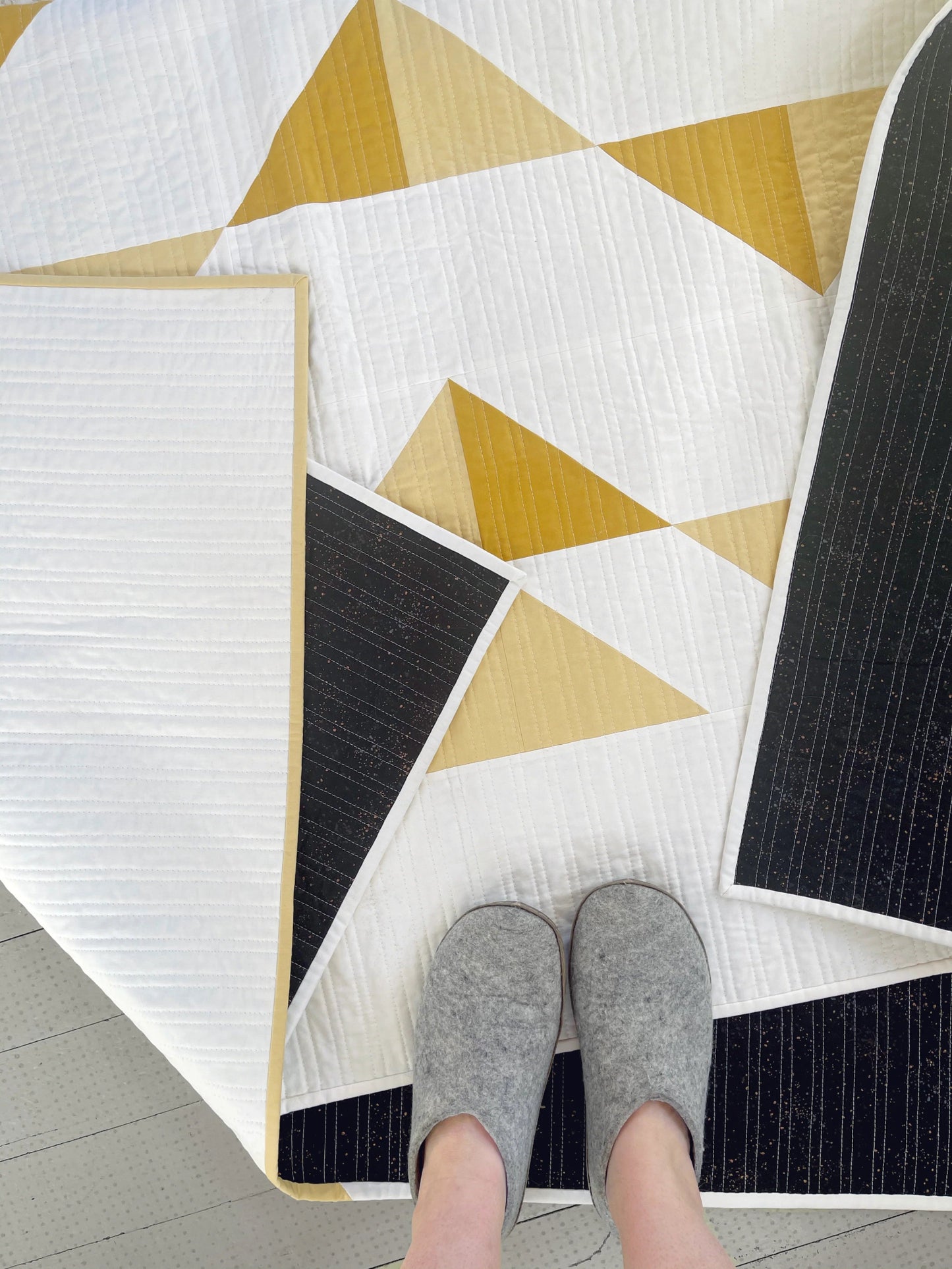 This modern original quilt pattern is appropriate for quilters of all skill levels and is a fast finish. The pattern includes beginner friendly instructions for the following sizes: