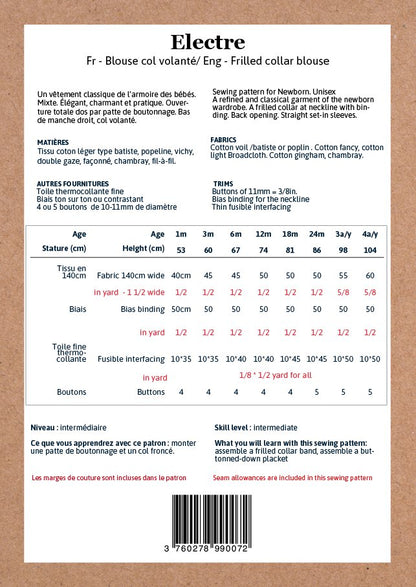Electre Frilled Collard Blouse Sewing Pattern- Baby 1/4Y - Ikatee