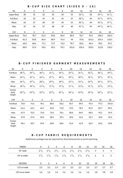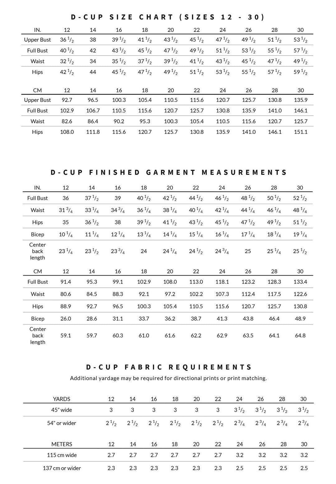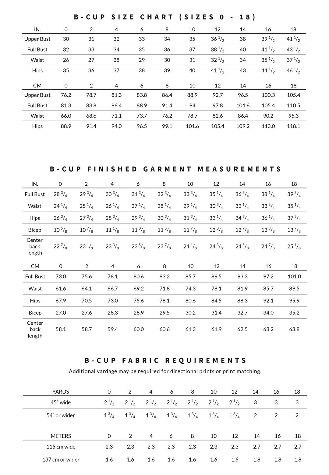- Digital pattern is offered in sizes 0 to 18 (B-cup) and 12 to 30 (D-cup). Both size ranges are included in your purchase.