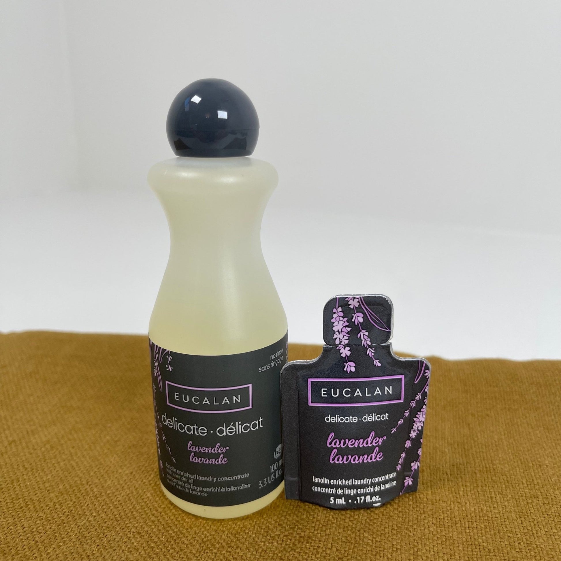 Eucalan’s Lavender Delicate Wash is scented using the essential oil of lavender. Known for its natural moth and flea inhibiting with antiseptic properties, this is a versatile wash for all fibres. The lanolin enriched formula naturally conditions fibres to keep static away. Lavender’s sweet soothing scent is ideal for baby items like blankets, stuffed animals, clothing and wool diaper covers. Our most versatile scent, use it on all your delicates like sweaters, lingerie, hosiery, comforters, linens, bedding, down jackets and bathing suits.