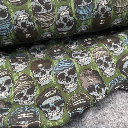 European Cotton Stretch Alpensweat - Skulls - Oeko-Tex® - Army Green