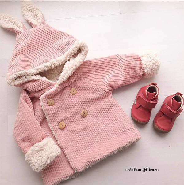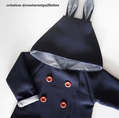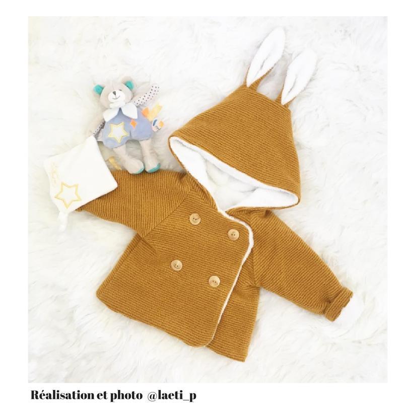 What you will practice with this sewing pattern : to sew a bias binding, to assemble a lining, raglan sleeves, a hood, and decorative ears.