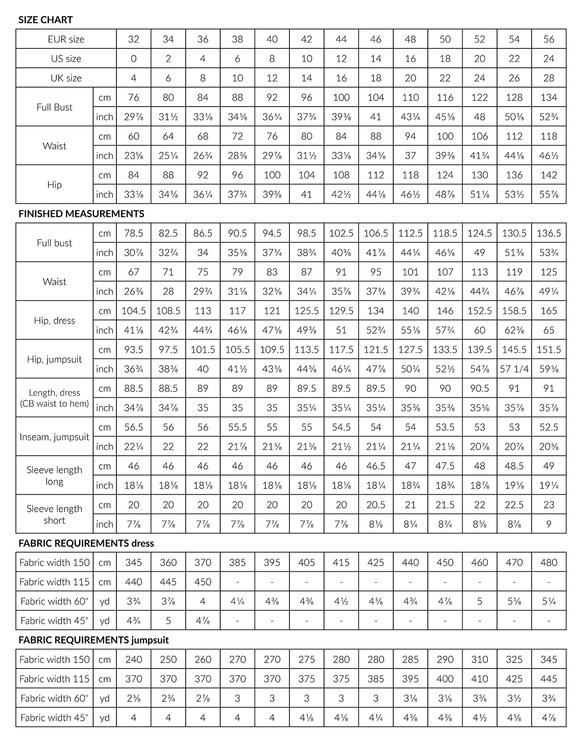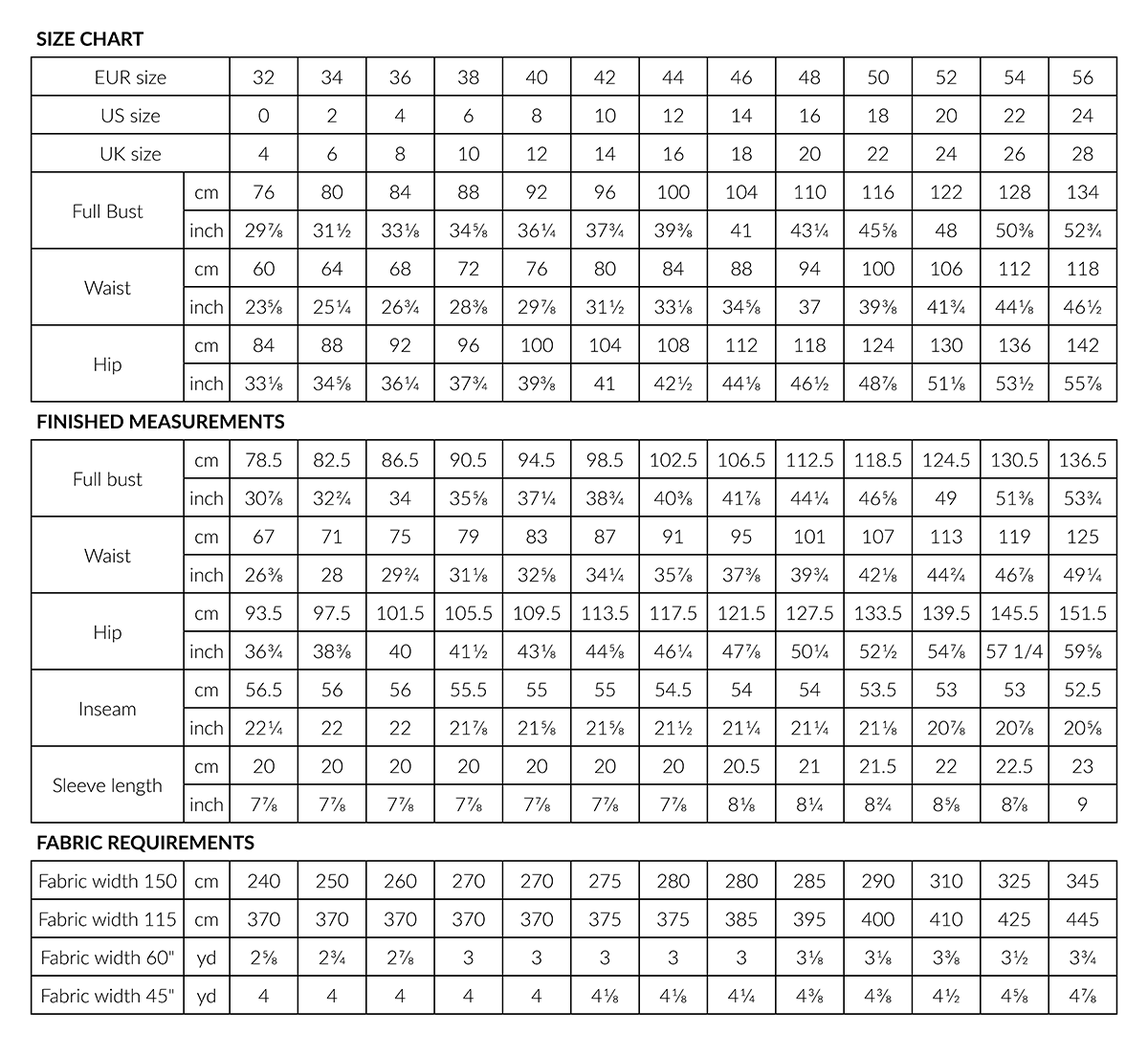 - 3.5 cm (1 3/8”) ribbon for wrap ties, 1.5 x your waist circumference + 170 cm (67”)
