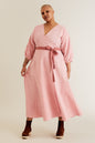 The Hali dress and jumpsuit are comfy, stylish wardrobe staples. Both variations feature a semi-fitted wrap bodice with a back yoke and a V-neck, wrap tie closure and handy side pockets. The dress comes with a voluminous, ankle-length circle skirt and ¾-sleeves with gathered sleeve openings. The midi-length jumpsuit has an interesting construction that is a hybrid of a dress and a jumpsuit. The jumpsuit variation includes simple T-shirt sleeves.