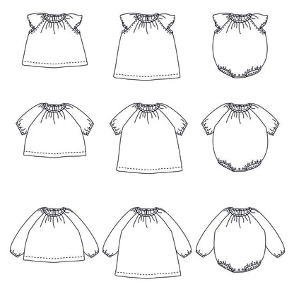 - 1 cm (⅜") elastic (long and short sleeve option, romper's thighs)