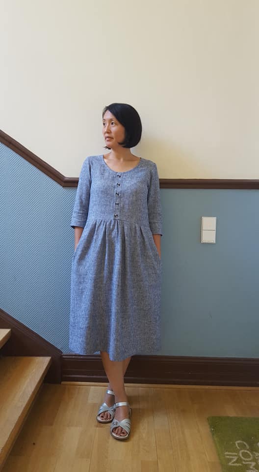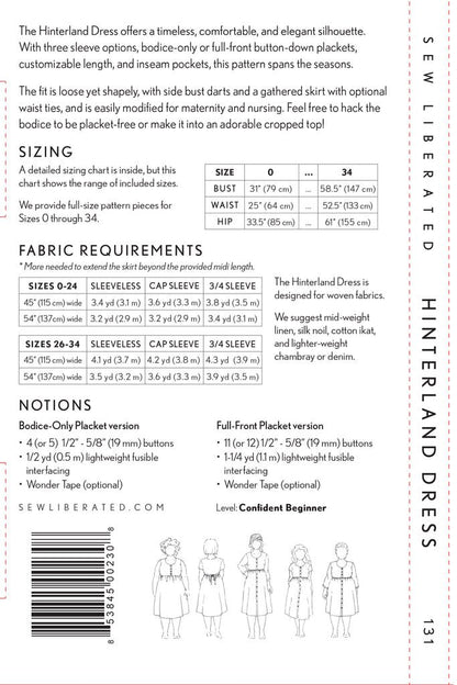 The Hinterland Dress offers a timeless, comfortable, and elegant silhouette. Featuring three sleeve options, either partial or full button down plackets, customizable length, and inseam pockets, this is a pattern workhorse that spans the seasons. The fit is loose yet shapely, with side bust darts and a gathered skirt with optional waist ties, and is easily modified for maternity and nursing. Feel free to lengthen the bodice and hack it into an adorable cropped top, too!
