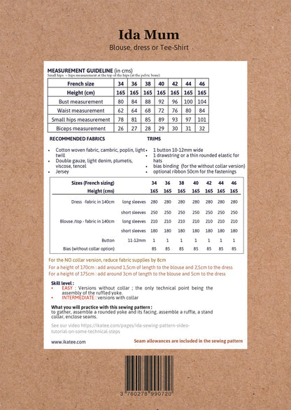 Ida Mum Blouse & Dress Sewing Pattern - Ladies 34/46 - Ikatee