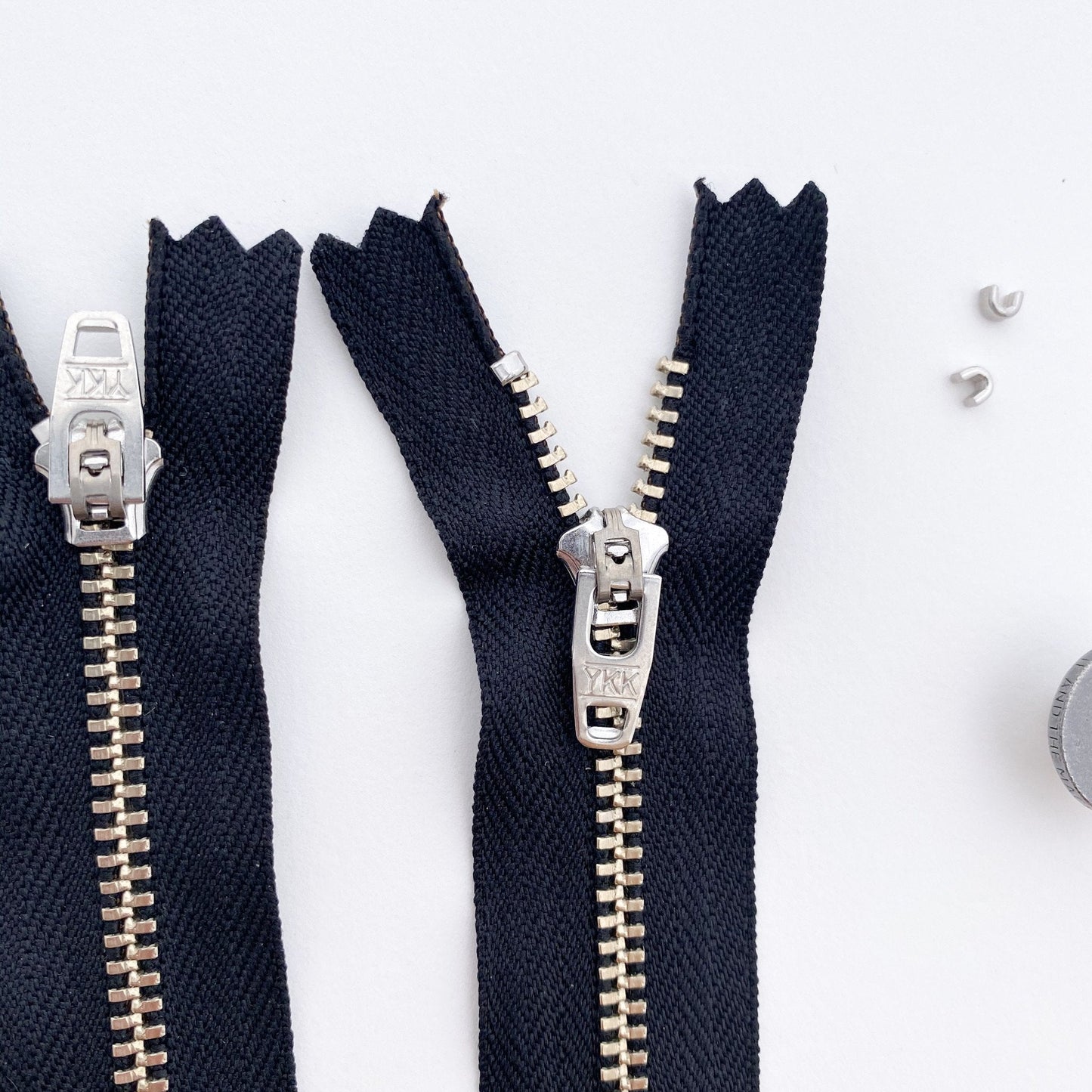 We include an extra top stop per zipper so if you need to shorten your zipper, you can do this at home. You will need some pliers/metal snips etc, but after removing the required about of teeth, you can clamp the top stop above the top metal tooth to ensure you do not accidentally pull the zipper pull off the teeth altogether which might have resulted in some swear words and frustration.