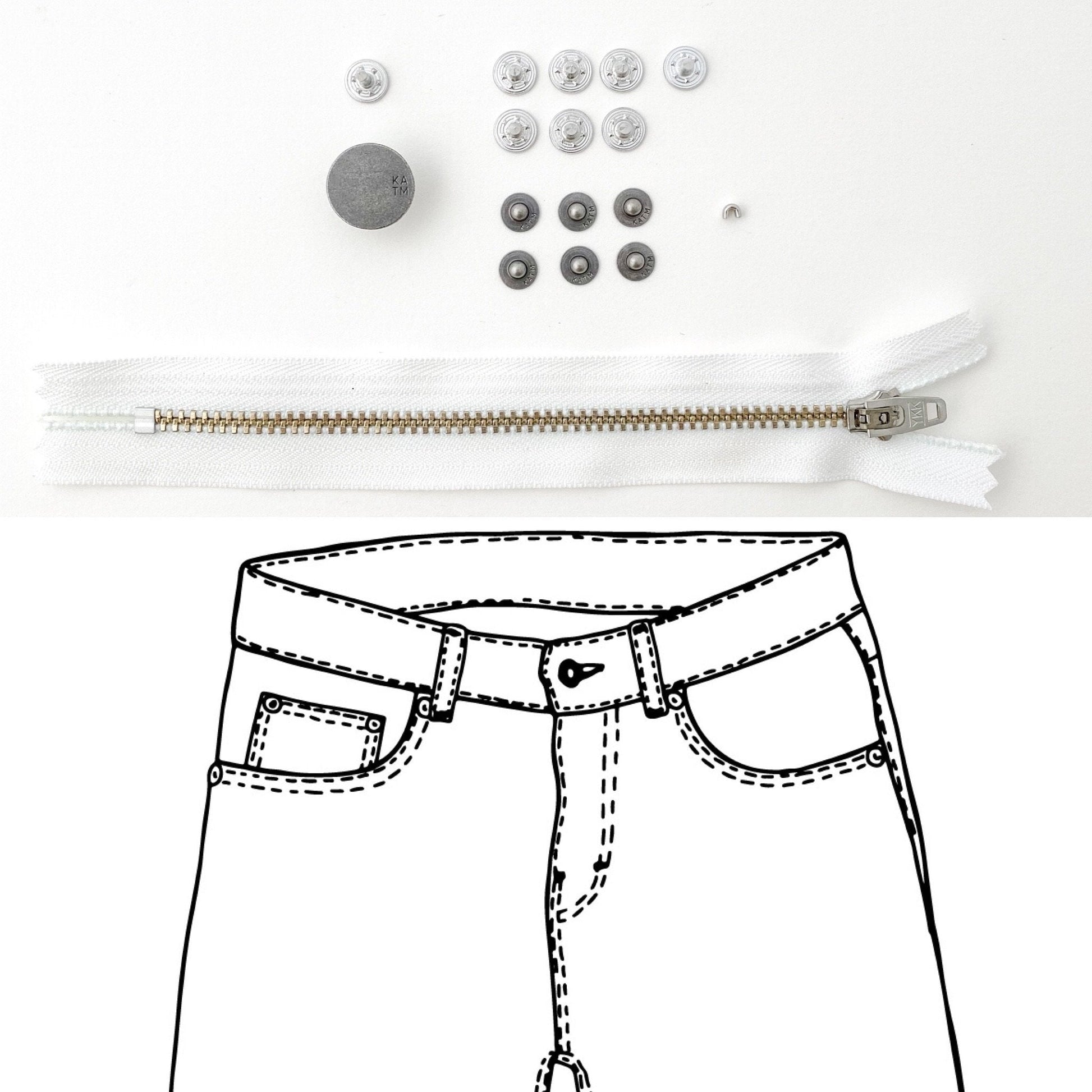 Jeans Hardware Kit - REFILL KIT - White Zipper / Pewter Hardware - Kylie And The Machine